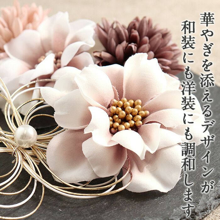 他の画像を見る 成人式や結婚式の華やかな振袖や卒業袴に 髪飾り 成人式 振袖用 Watmosphere くすみ ピンク グレージュ ブラウン 花 ピンポンマム 水引かすみ草 日本製 振袖 卒業袴 振り袖 ママ振 当店特別価格 ¥ 10,450 税込 お気に入りに登録する