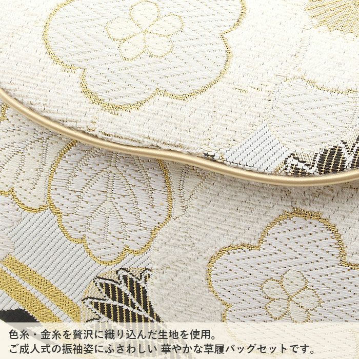 他の画像を見る 痛くなくて歩きやすい、初めての方にも安心の履き心地 成人式 草履バックセット 振袖 草履バッグセット 草履 バッグ フリー L ホワイト 万寿菊 七宝 橘 西陣織 正絹帯地 エナメル 3枚芯 日本製 当店特別価格 ¥ 33,000 税込 在庫切れ 詳細を見る お気に入りに登録する