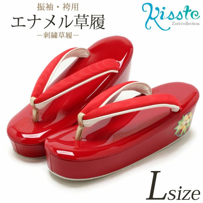他の画像を見る ≪在庫限り≫ 南天刺繍が華やかな振袖用草履 草履 成人式 振袖用 <厚底 ハイヒール> Lサイズ フリーサイズ 日本製<赤/南天 刺繍> 当店特別価格 ¥ 30,800 税込 在庫切れ 詳細を見る お気に入りに登録する