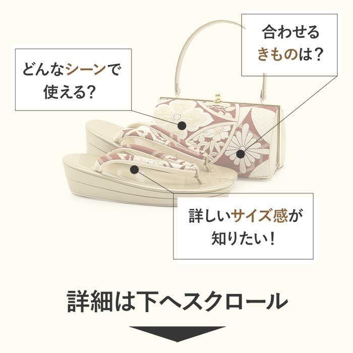 他の画像を見る 痛くなくて歩きやすい、初めての方にも安心の履き心地 成人式 草履バックセット 振袖 草履バッグセット 草履 バッグ フリー L ホワイト 万寿菊 七宝 橘 西陣織 正絹帯地 エナメル 3枚芯 日本製 当店特別価格 ¥ 33,000 税込 在庫切れ 詳細を見る お気に入りに登録する