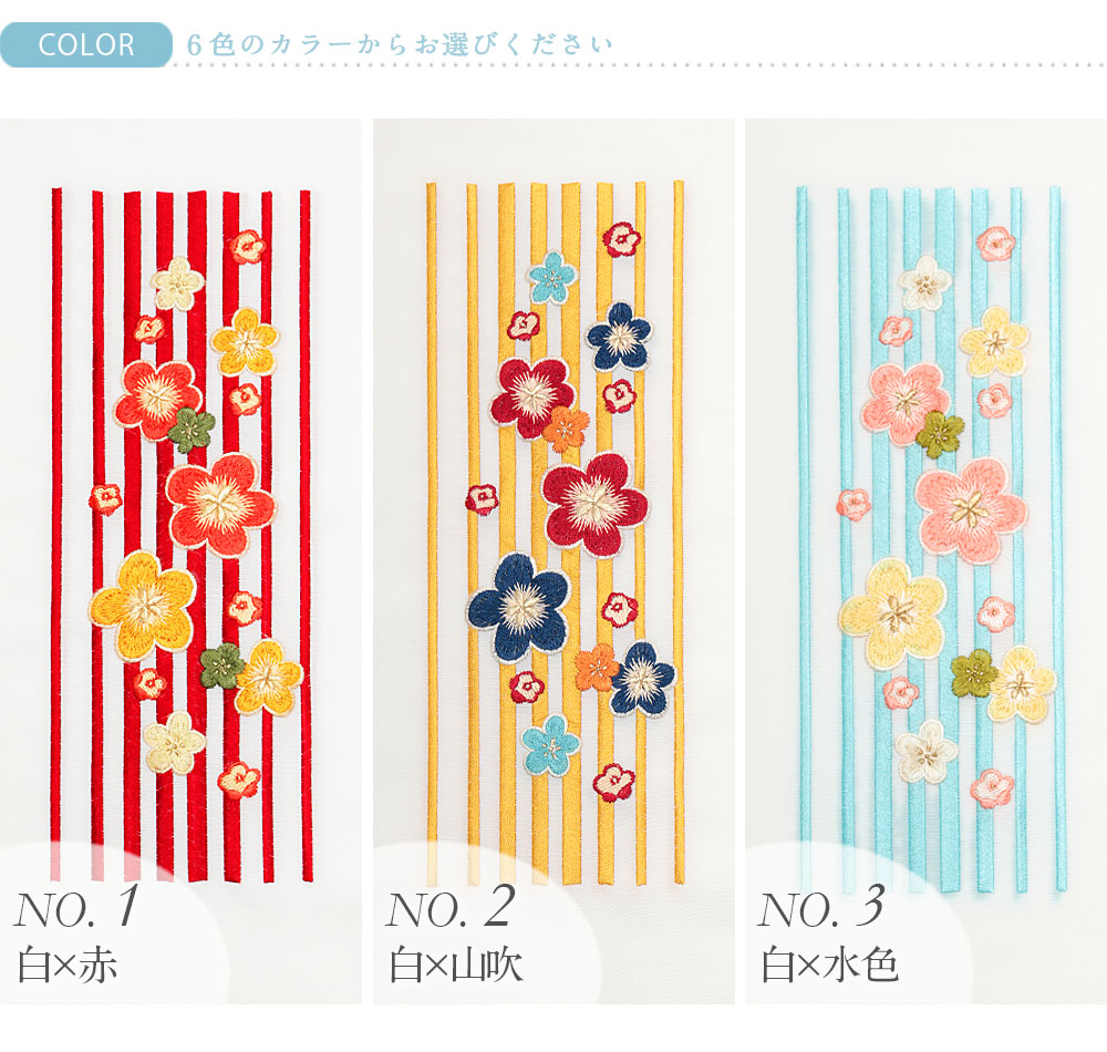 【振袖用】 高級刺繍半襟 <縞に梅> 全6色