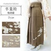 卒業式などのハレの日を彩る、おしゃれな袴スタイルです。 ワントーンカラーの袴ははシンプルな色使いなので、お手持ちの二尺袖にはもちろん、華やかな振袖や古典的なママ振り等にもイメージしやすく、コーディネートの幅が広がります。 金銀白に煌めく梅の刺繍が袴の裾や紐にも施され、着姿を可愛らしく華やかに彩ります。 袴の中に仕切りがない行灯袴(あんどんはかま)なので、振袖等の丈の長い着物にも合わせやすく、普通のスカートのようにお召しいただけます。 上質なポリエステルを使用した袴は、ペラペラ感やテカリのないしっかりとした生地感です。 正絹と異なり、ご自宅でもお手入れしやすいので、汚れを気にせずに袴スタイルをを楽しめます。 袴の後ろ側には伸縮性のあるヘラが付いています。 ヘラは、着付けの時に袴下帯と背の間に深く差し込むことで着崩れ防止になり、万が一後紐が解けてしまってもヘラが刺さっているので、袴が落ちる心配がありません。 届いてすぐに使える、お仕立て上がりの袴です。 合わせやすい3色のカラー展開と、3サイズをご用意しました。 お手持ちの着物に合わせて、お好みの色をお選びください。