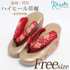 草履 成人式 振袖用 ハイヒール Lサイズ フリーサイズ <ゴールド×赤 桜 刺繍>