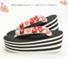約8cmある草履台は、2色交互に7枚重ねられた洒落たデザインで、高いヒールはスタイル美人なモデル風佇まいを演出します。