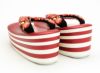約8cmある草履台は、2色交互に7枚重ねられた洒落たデザインで、高いヒールはスタイル美人なモデル風佇まいを演出します。