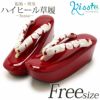 草履 成人式 振袖用 <fussa> Lサイズ フリーサイズ 日本製 厚底 ハイヒール こっぽり ぽっくり <赤/椿 刺繍>