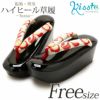 草履 成人式 振袖用 <fussa> Lサイズ フリーサイズ 日本製 厚底 ハイヒール こっぽり ぽっくり <黒/鶴 梅 刺繍>