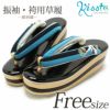 青と紺のストライプの花緒に、鶴の刺繍が施された振袖用草履です。