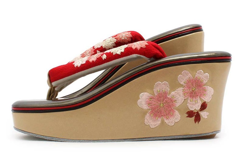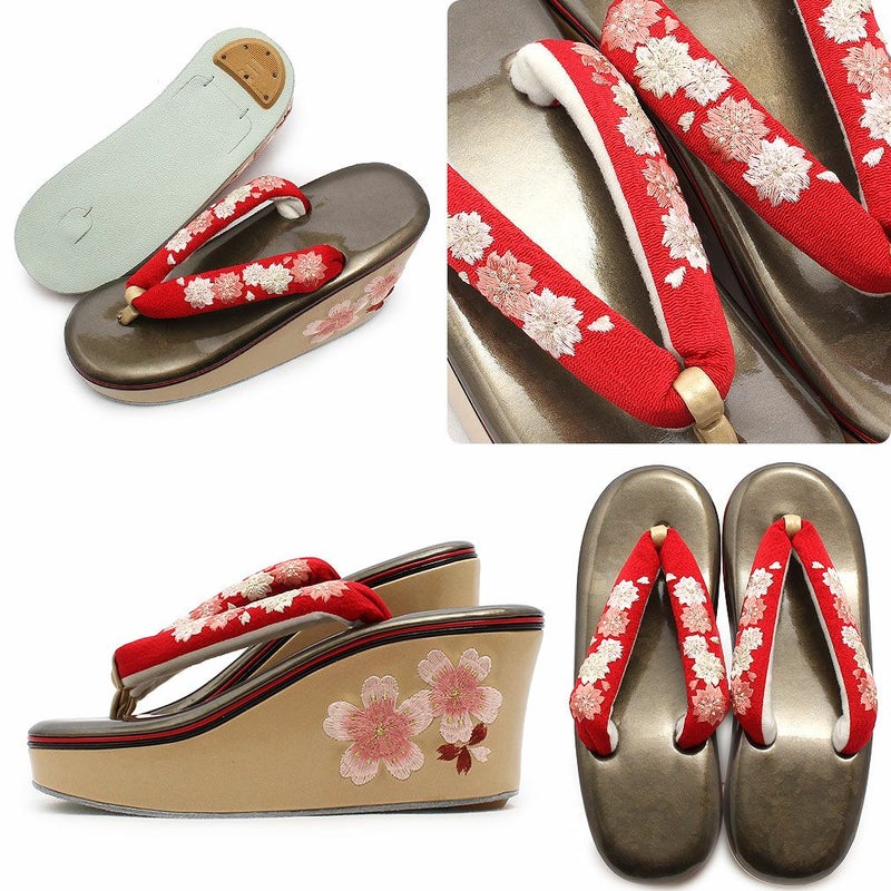 バッグ・花緒:黒・赤 草履台:ブラウン・ベージュ