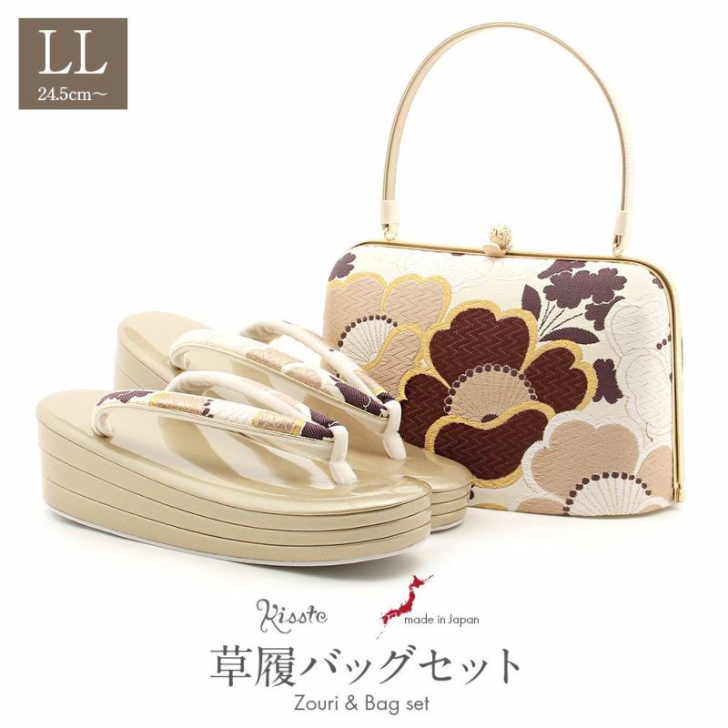 バッグ・花緒:オフホワイト・ゴールド・こげ茶 草履台:ゴールド