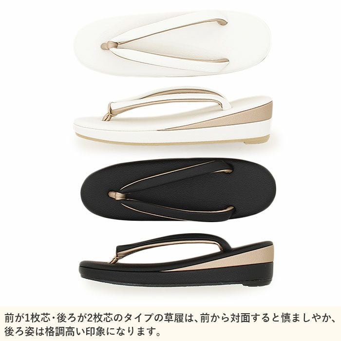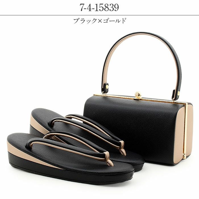 バッグ・花緒・草履台:全2色展開 No.1:ブラック×ゴールド No.2:ホワイト×ゴールド