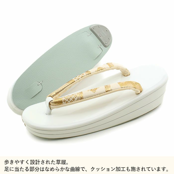 足裏の当たる部分はなだらかな曲線のため前に滑りすぎず、きもの初心者の方も履きやすい草履です。