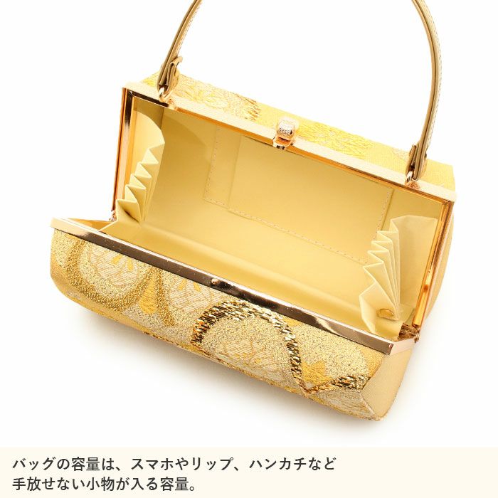 草履台:エナメル(合成皮革) バッグ生地部分:帯地(金属糸使用)