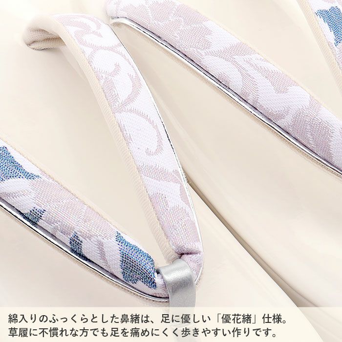 【バッグ・鼻緒】:白・青 【草履本体】:白(エナメル)