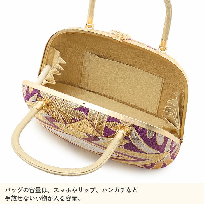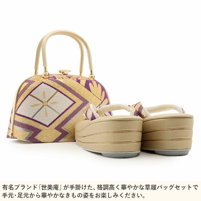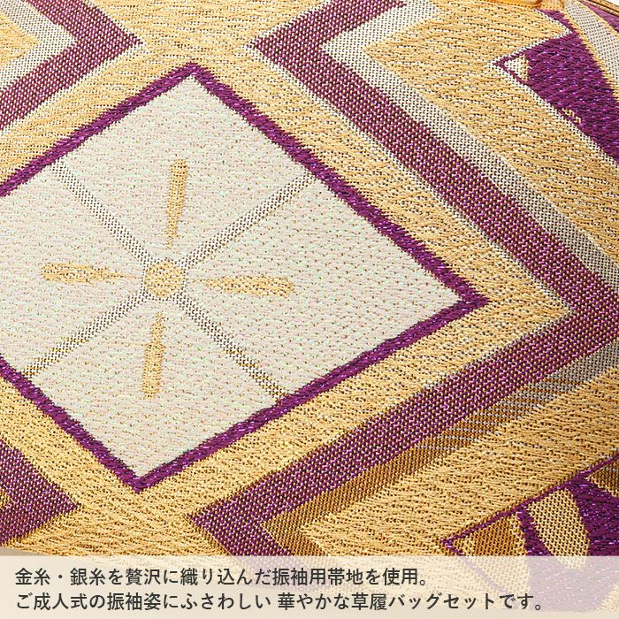 【バッグ・鼻緒】:ゴールド・パープル(ラメ感あり) 【草履本体】:ゴールド
