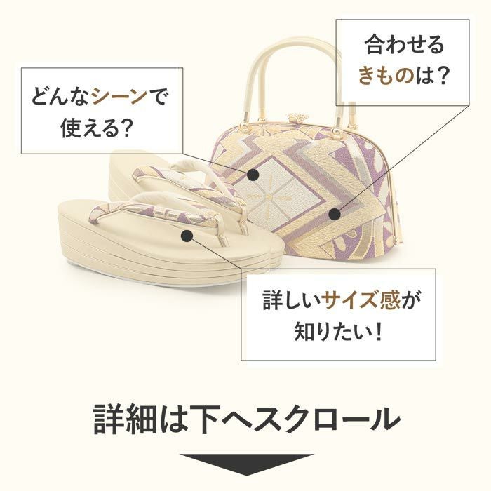 着物雑誌でもお馴染みの「世美庵」ブランドの振袖用草履バッグセットです。 「世美庵」は国内唯一の草履自社生産にこだわるメーカーブランドで、匠の技術が結集され、貴賓の風格漂う最高級草履バッグセットです。 草履の芯は、ゴールドのラインが埋め込まれた3枚芯を採用。 かかとの高さは約5.5cmのヒール高で、着姿を美しく魅せ、歩きやすく足への負担を軽減します。 一足ずつ丁寧に作りあげられた草履は、履きやすさ抜群の「優花緒」。 衝撃にも強く長時間の歩行も疲れを感じさせない逸品です。 フォルムが上品なバッグは、折り財布やスマートフォンなどが入る大きさ。 底面には底鋲が取り付けられており、汚れや傷が付きにくい設計です。 使いやすい二本の持ち手が特徴的なバッグです。 お母様やお姉様の振袖を受け継いで、草履バッグセットを新調したコーディネートにするお嬢様も多くいらっしゃいます。 レンタル店や写真館などでは貸し出しの草履バッグセットもありますが、レンタルではなかなか出回らない繊細なお作りやお洒落なデザインの草履バッグは振袖コーデの中でもぱっと目を引く存在になるでしょう。 華やかな装いを楽しみたい日のおともに、ぜひお手に取っていただきたい草履バッグセットです。