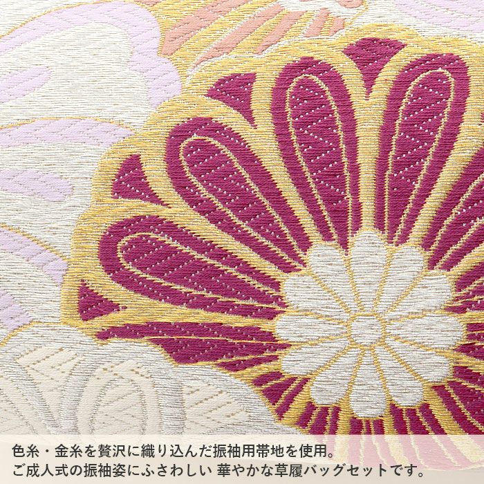 【バッグ本体・鼻緒】振袖用帯地 【草履】合成皮革