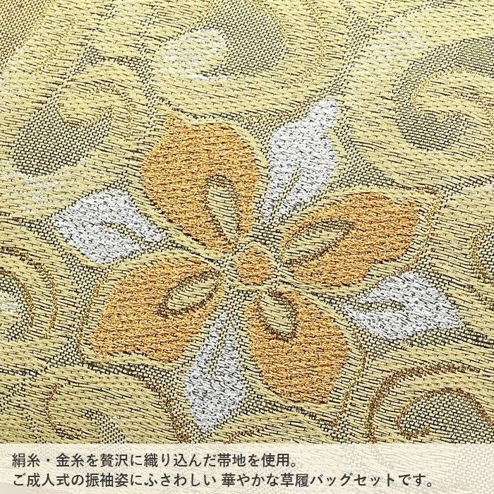 草履台/バッグ革部分/草履裏:合成皮革 バッグ生地部分:振袖用帯地