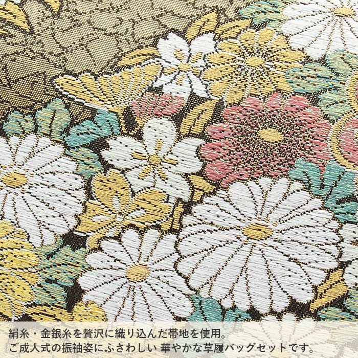草履台/バッグ革部分/草履裏:合成皮革 バッグ生地部分:振袖用帯地