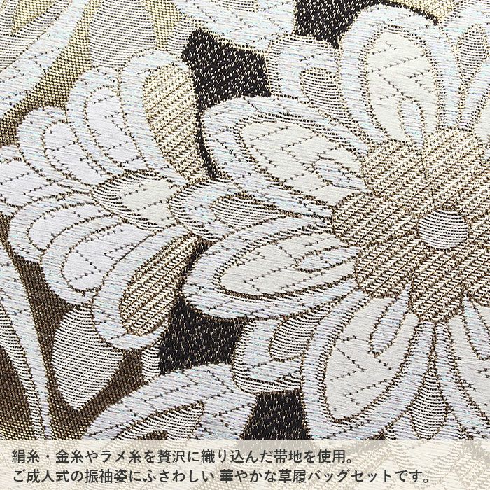 草履台/バッグ革部分/草履裏:合成皮革 バッグ生地部分:振袖用帯地