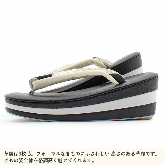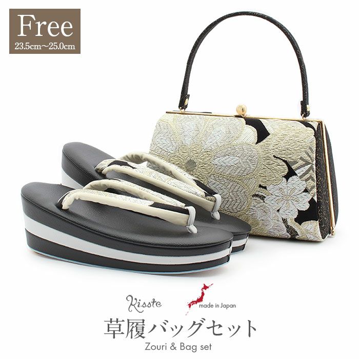 バッグ・花緒:ブラック、ライトゴールド 、シルバー、ホワイト(エメラルドグリーンラメ) 草履台:ブラック、ライトグレー