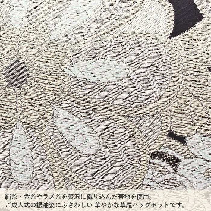 草履台/バッグ革部分/草履裏:合成皮革 バッグ生地部分:振袖用帯地