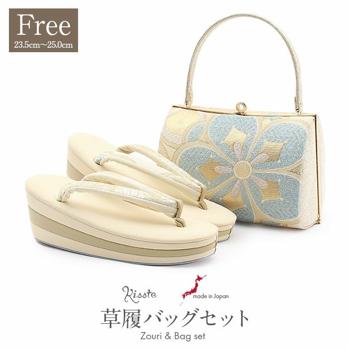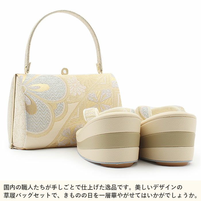 バッグ・花緒:クリーム、ゴールド、ライトブルー、ホワイト 草履台:クリーム、ライトベージュ