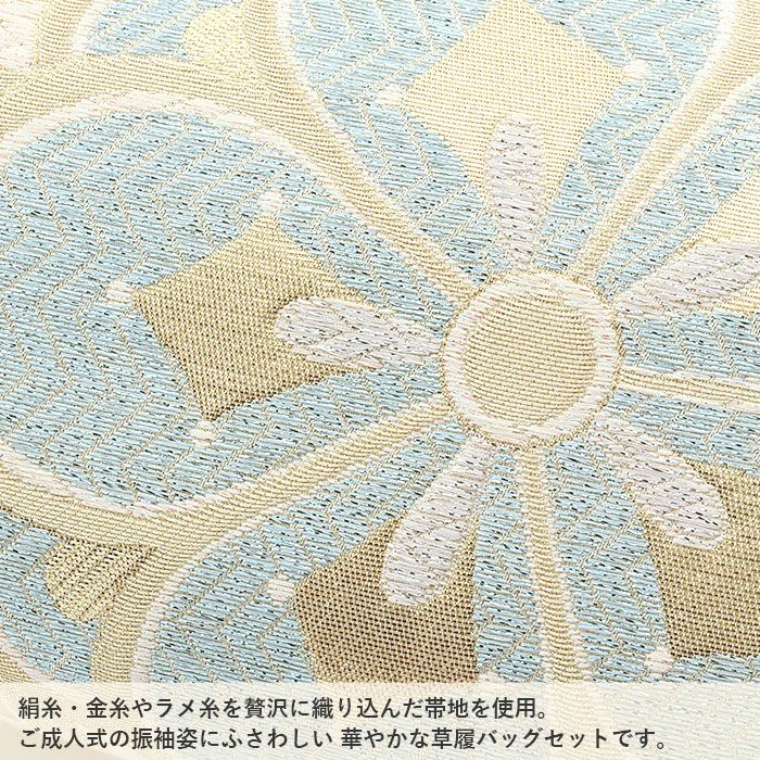 草履台/草履裏:合成皮革 バッグ生地部分:振袖用帯地