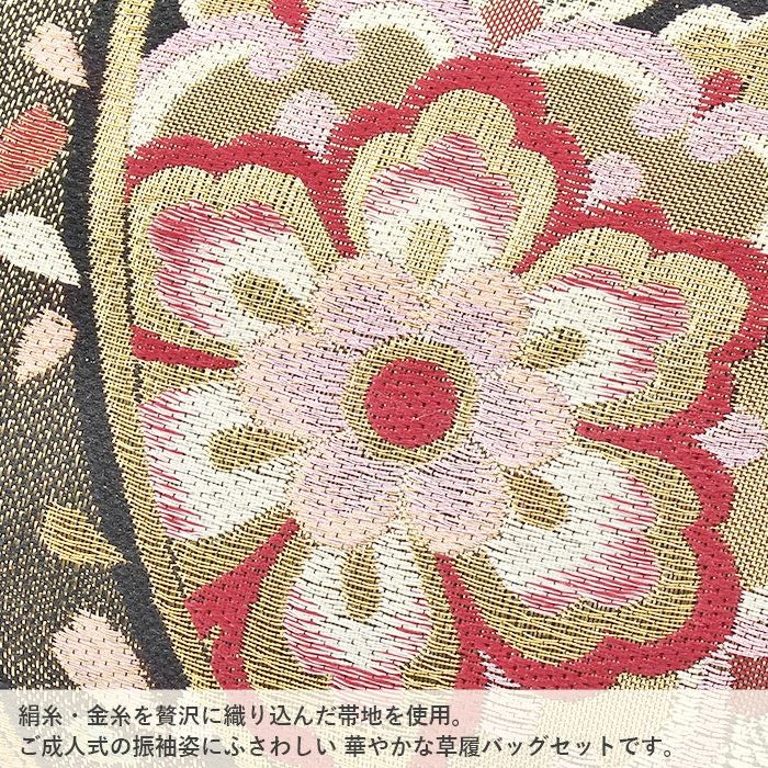 草履台/草履裏:合成皮革 バッグ生地部分:振袖用帯地