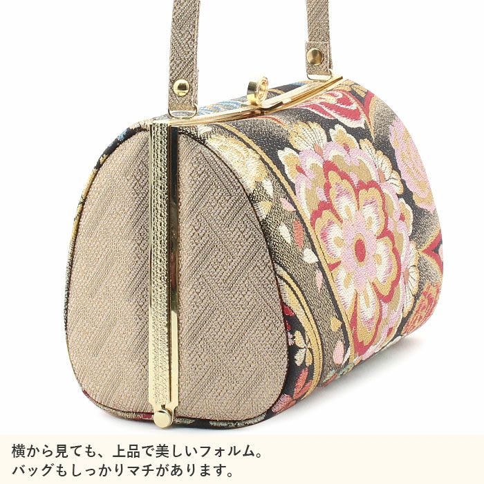 ※実際の商品と同じ色合いに画像修正をしておりますが、環境やモニターの違いにより多少色の違いが出て来ることがあります、ご了承ください。 ※帯地を使用した商品は、商品の性質上どうしても糸のほつれが発生してしまいます。商品不良ではございませんので予めご了承くださいませ。 ※製造するうえで十分に注意しておりますが、どうしても傷や汚れ、染料飛びや染料欠けなどができる場合がございます。また、金具部分は金属の性質上、変色やくすみ、傷や汚れなどがある場合がございます。予めご了承のうえ、お買い求めください。