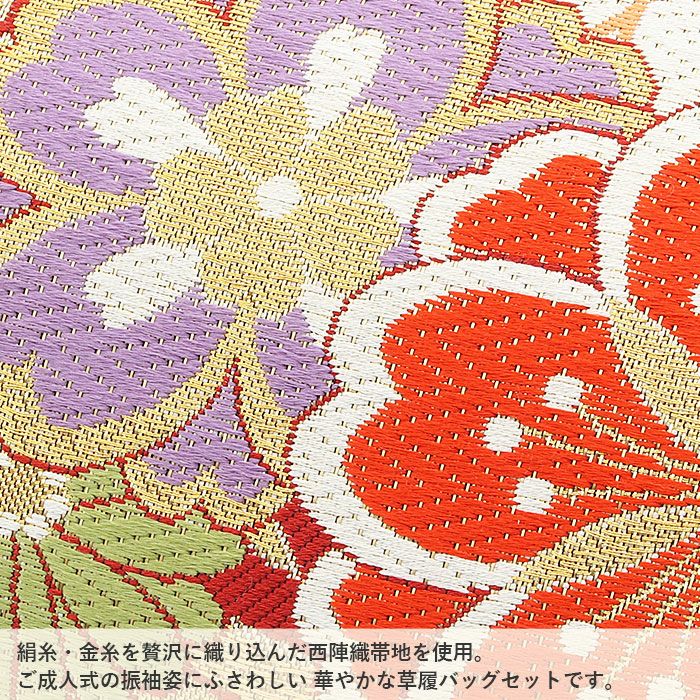 草履台/草履裏:合成皮革 バッグ生地部分:西陣織帯地