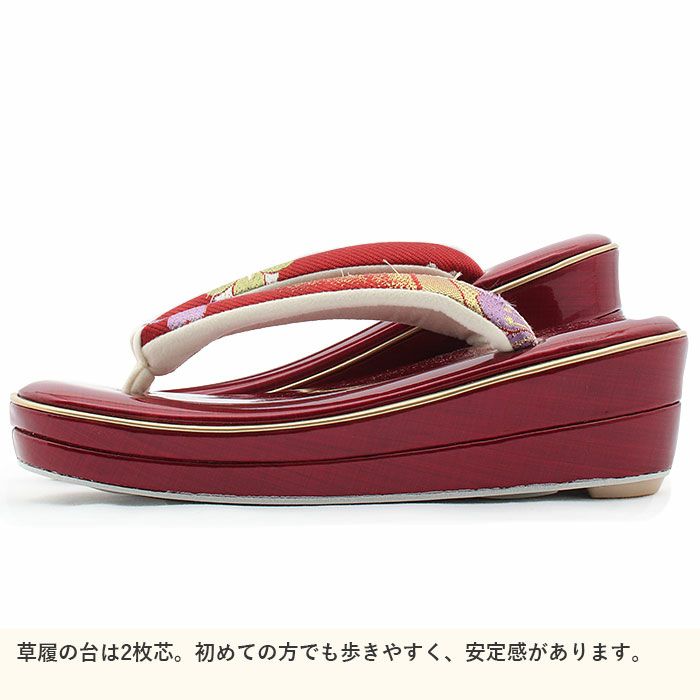 バッグ・花緒:ゴールド、レッド、ホワイト、ライトグリーン、ライトパープル 草履台:レッド