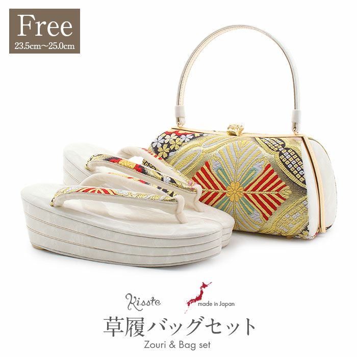 バッグ・花緒:ゴールド・ブラック・レッド 草履台:オフホワイト