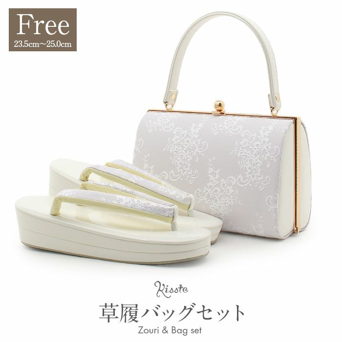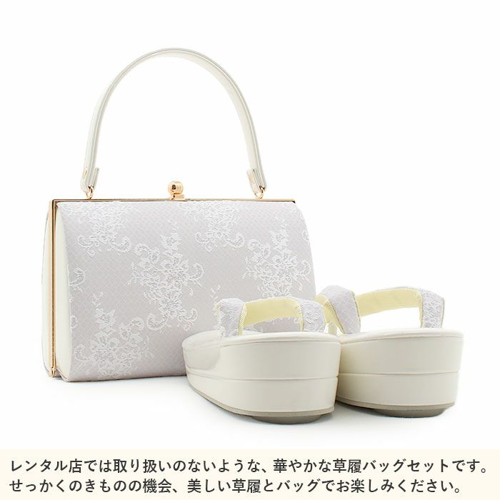 バッグ・花緒:ホワイト・シルバー 草履台:柔らかい艶やかなホワイト