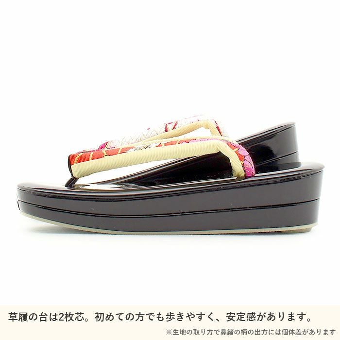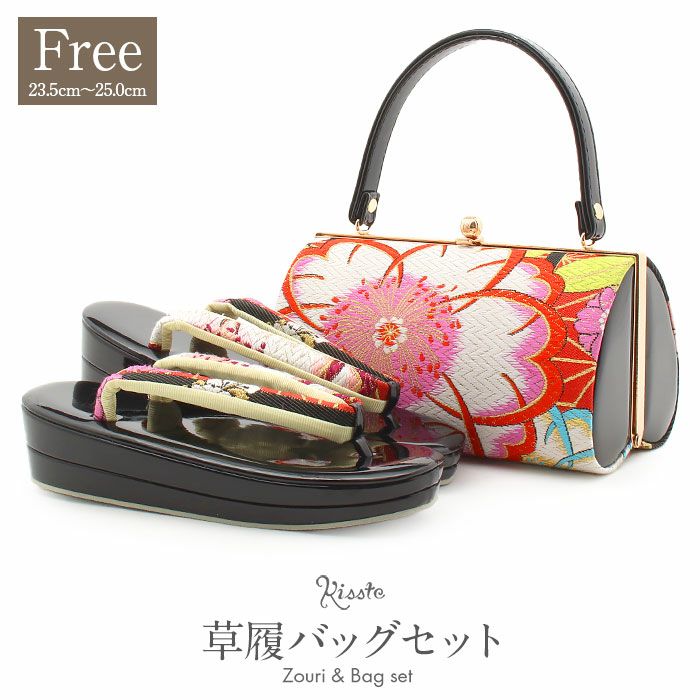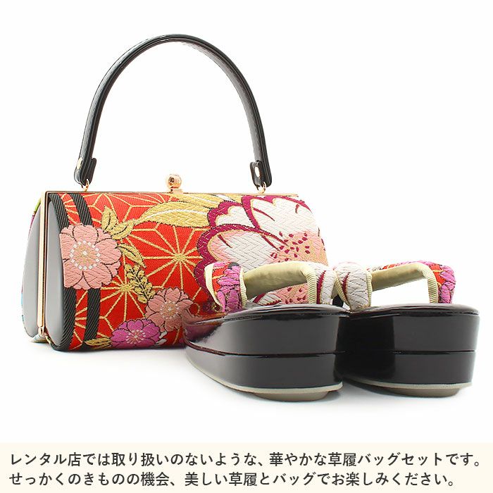 バッグ・花緒:レッド・ブラック・ピンク 草履台:艶やかなブラック