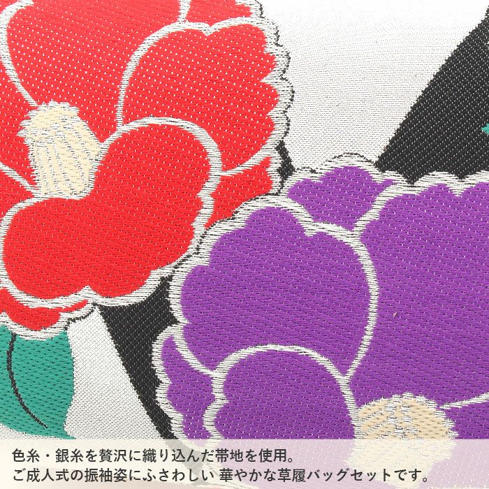 草履台/草履裏:合成皮革(エナメル) バッグ/鼻緒生地部分:振袖用帯地