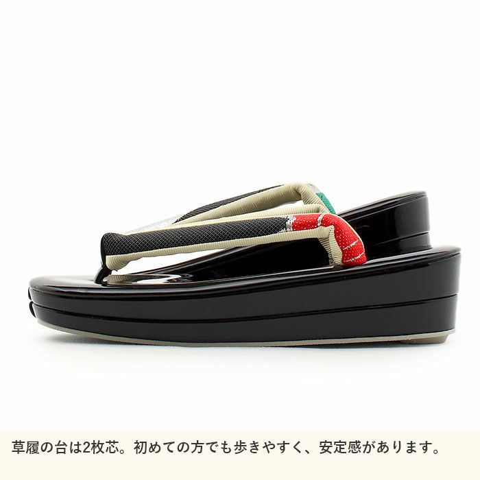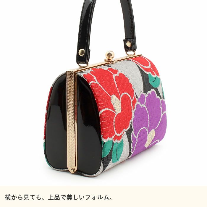 バッグ・花緒:レッド・パープル・ブラック・シルバー 草履台:艶やかなブラック
