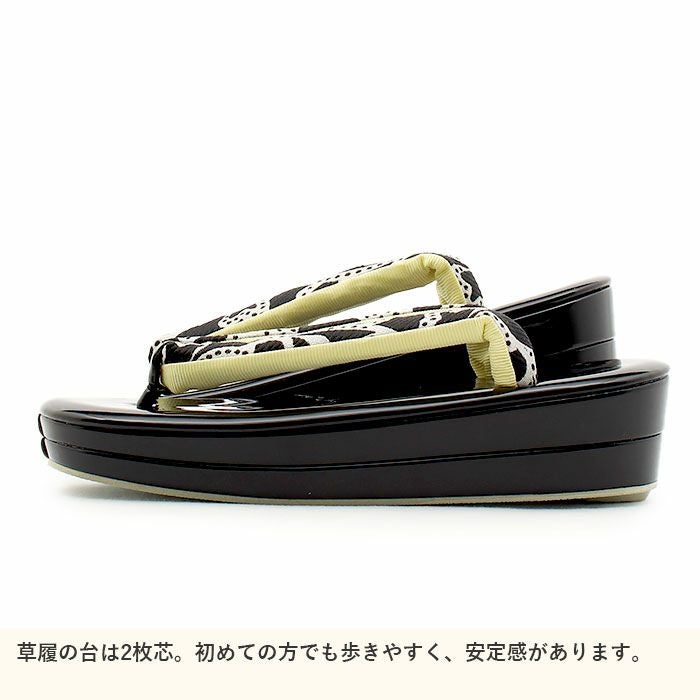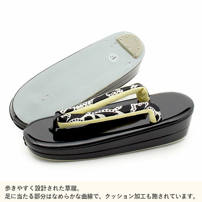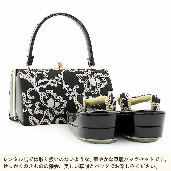 バッグ・花緒:ブラック・ホワイト 草履台:艶やかなブラック