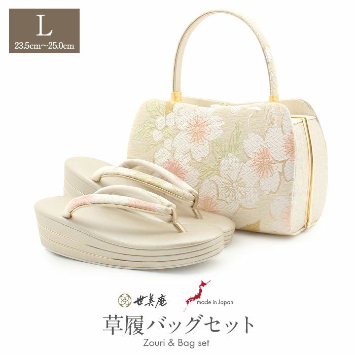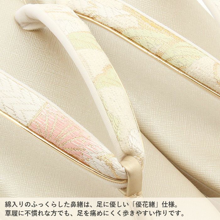 バッグ・花緒:クリーム・ホワイト・ピンクなど 草履台:シャンパンゴールド