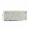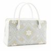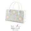 ■ 凛とした輝きが、装いを格上げする利休バッグ ■ 白を基調に、涼やかなブルーシルバーと格調あるゴールドで織り上げた七宝華紋。 西陣織・正絹ならではの繊細な織りが、上品な輝きと奥行きを生み出す利休バッグです。 七宝文様は、円が連なることで「円満」「調和」「ご縁」を象徴する吉祥柄。 華紋を組み合わせることで、格式を保ちながらもやわらかな華やぎを感じさせる意匠に仕上がっています。 白の清潔感とブルーシルバーの透明感が調和し、訪問着や付下げなどのフォーマルスタイルに爽やかな気品をプラス。 装いをすっきりと整えながら、印象的な美しさを添えてくれる一品です。 ーおすすめポイントー ・西陣織の正絹帯地を使用した、格調高い仕立て ・白×ブルーシルバー×ゴールドの配色が、清楚で洗練された印象を演出 ・縁起の良い七宝華紋が、晴れの日にふさわしい華やぎを添える ・大きく開く中央ファスナーで、小物もゆったり収納可能 ・荷物を整理しやすい三分割構造で使いやすさ抜群 ・底鋲付きで擦れや汚れを軽減し、美しさをキープ 澄んだ輝きと品格が、装いを美しくまとめる。 晴れの日にふさわしい、気品あふれる利休バッグです。