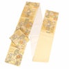 結婚式の留袖や、訪問着などの礼装用にお使い頂ける、西陣織お仕立て上り袋帯です。 帯は伝統工芸の西陣織にて仕立てられており、染められた糸を複雑に織って模様を作るので、完成までに多数の工程があり、とても手間暇がかかる高級絹織物です。 こうして丁寧に織られた生地は、先染めしてから織っているので、一般的な染色法の後染めより丈夫でシワになりにくいのが特徴です。 絹の帯には、金糸をふんだんに使用しており、魅入ってしまうほどの美しい輝きが魅力的。 光の当たり方で、絹特有の柔らかな光沢や金糸が反射し、高級感あふれる美しい帯がお楽しみいただけます。 絹の質感と光沢、上品で絶佳なデザインが、大切なお祝いの席を華やかに演出してくれるでしょう。 結婚式の黒留袖、色留袖を始め、七五三や入卒業などの訪問着にもピッタリのおすすめの逸品です。