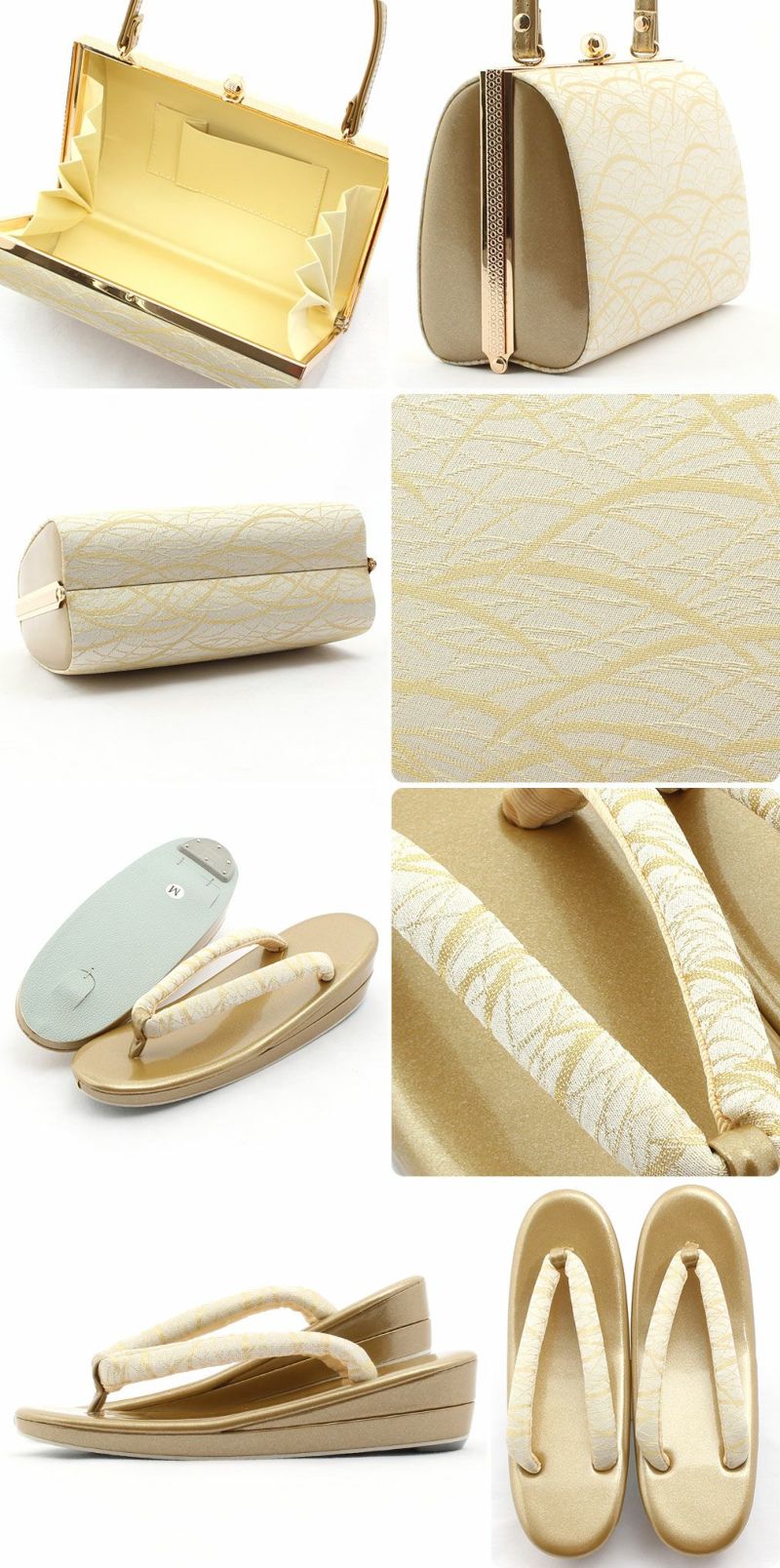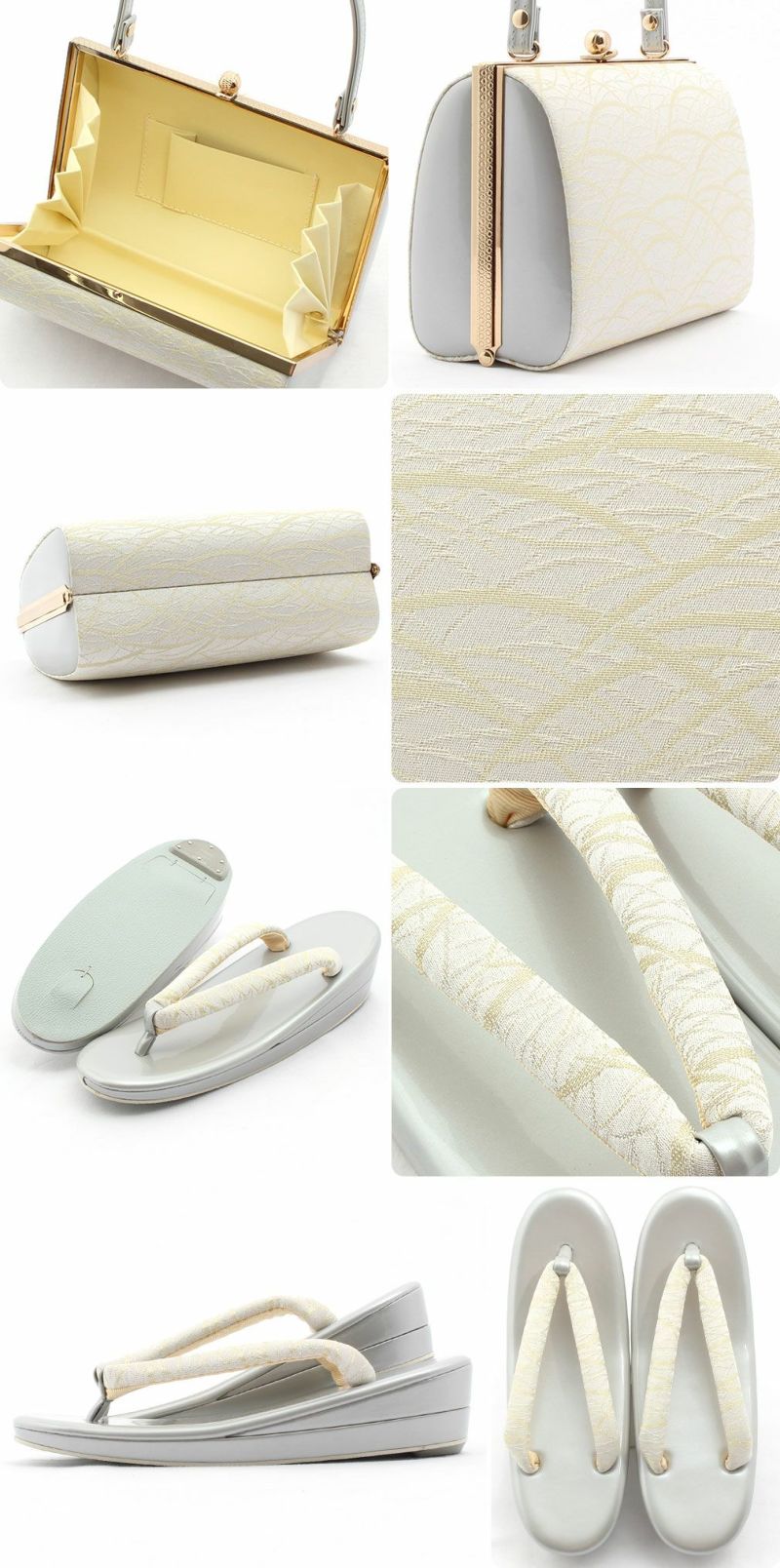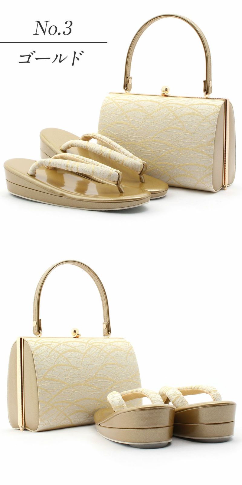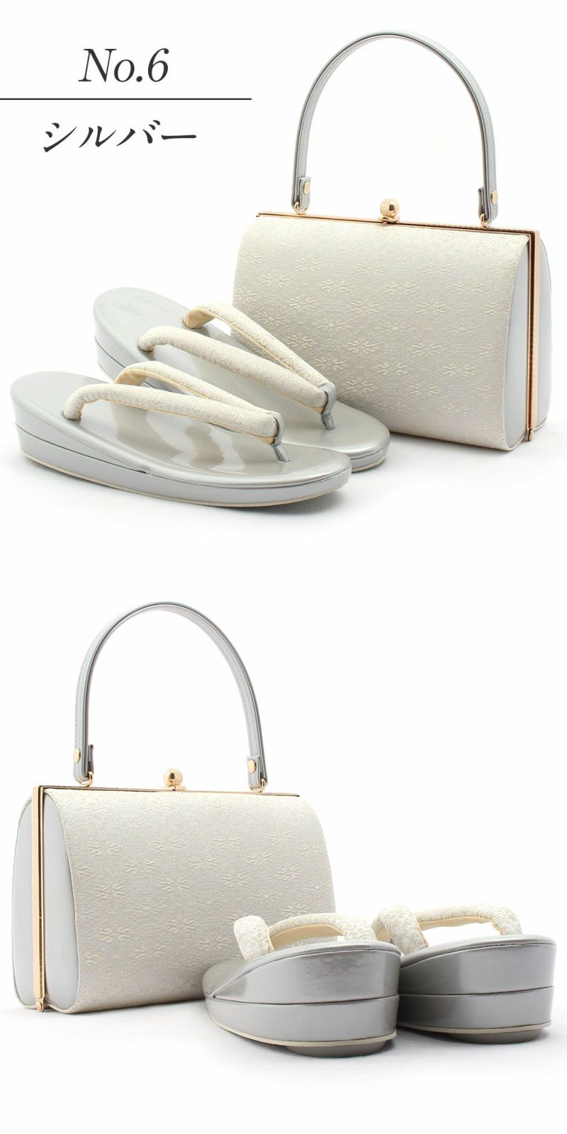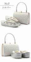 礼装用草履バッグセットをお手頃な価格でご用意いたしました。 上品に煌めく金銀糸が織り込まれた帯地を使用した、どんなフォーマル着物にもコーディネイトしやすいセットとなっております。 色はゴールドとシルバーの2色展開、柄は全部で3柄取り揃えております。 草履のサイズは、22.0~26.0cmまでの小さいサイズから大きいサイズまで対応可能なS・M・L・LLの4サイズ展開。 かかとの高さは5~5.5cm前後と着物初心者の方にも扱いやすいお草履となっております。 草履の天部分(表面)にはクッション性のある素材を使用しているので歩きやすく、長時間の歩行も疲れを感じません。 結婚式や披露宴の黒留袖や色留袖、訪問着をはじめ、入学式やパーティーなどフォーマルなシーンで幅広くご利用いただける礼装用草履バッグセットです。