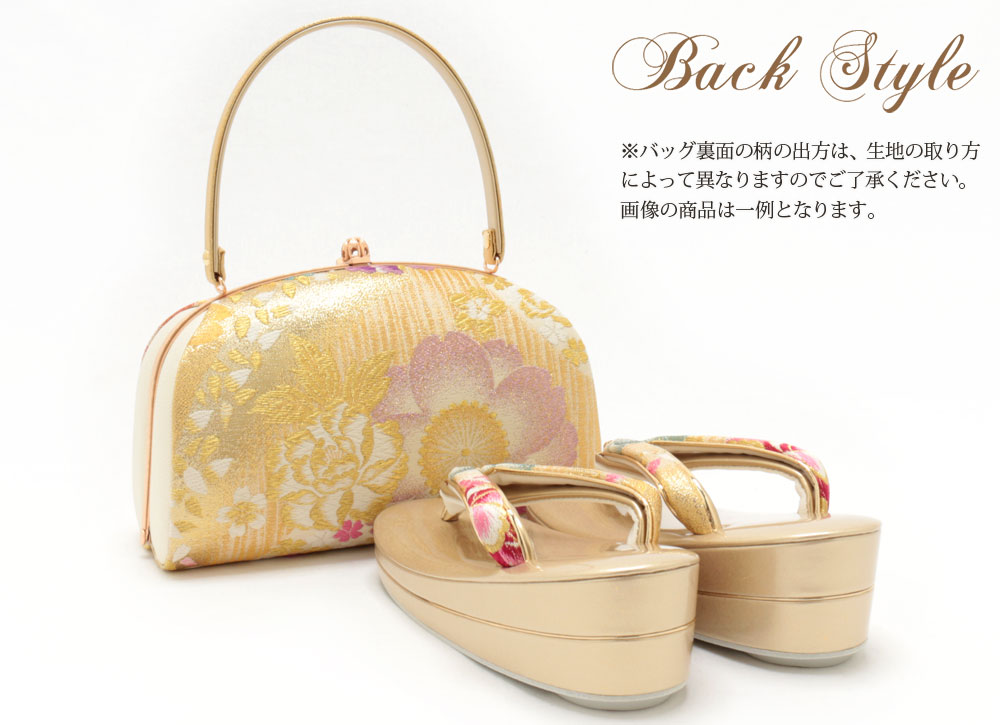 ※草履の花緒、バッグ裏面ともお選びいただくことができませんのでご了承ください。