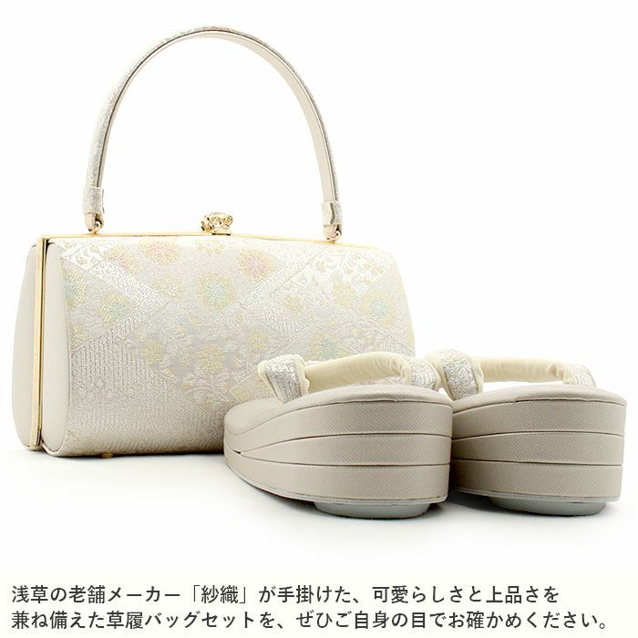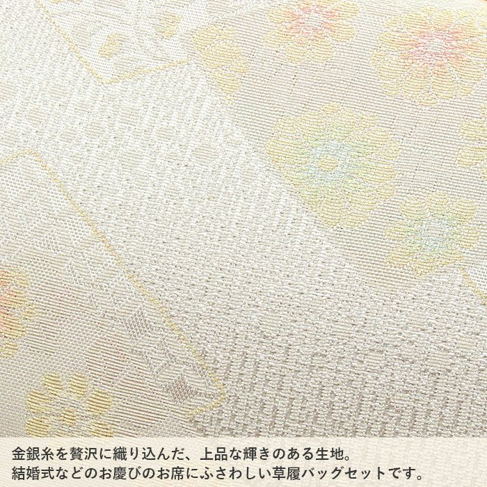 バッグ・花緒:銀・金・ピンク・水色 草履台:アイボリー