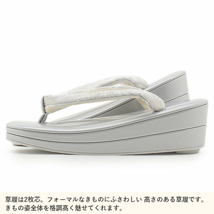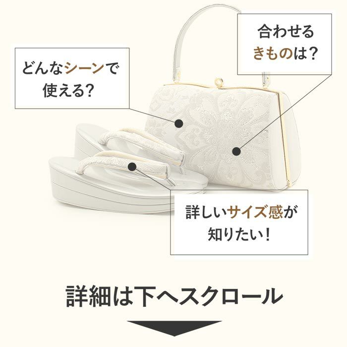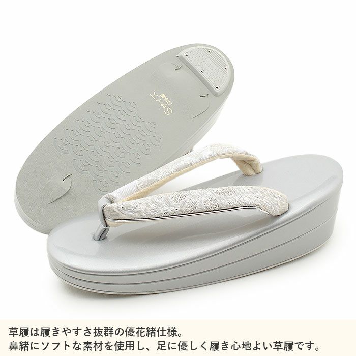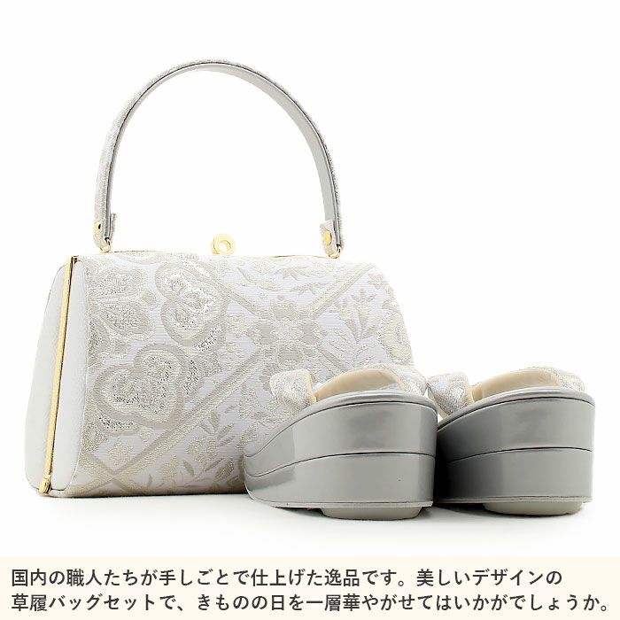 バッグ・花緒:シルバー・ホワイト 草履台:シルバー