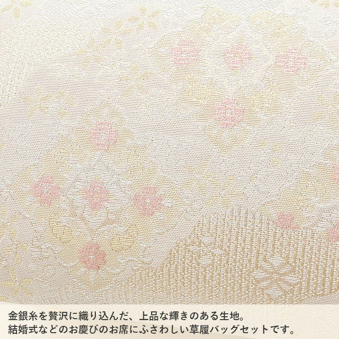 4. 草履バッグセット 留袖用 訪問着用 草履バッグ 紗織 沙織 Mサイズ シルバー シャンパンゴールド 花文 雲取り 1の3枚芯 日本製 パールトーン加工