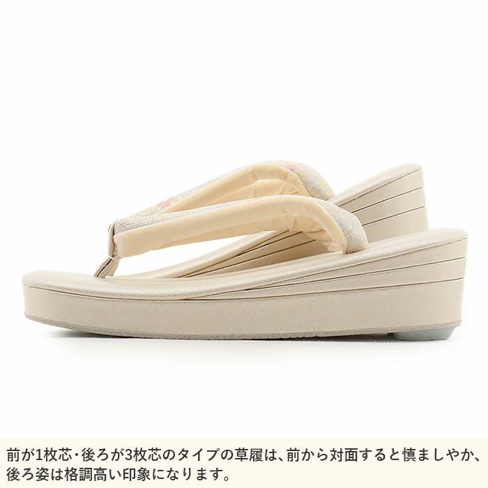 痛くない 歩きやすい、初めての方にも安心の履き心地 草履バッグセット 留袖用 訪問着用 草履バッグ 紗織 沙織 Mサイズ シルバー シャンパンゴールド 花文 雲取り 1の3枚芯 日本製 パールトーン加工