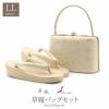 ◆東京・浅草製の伝統と格調を誇る【紗織】ブランド◆ 結婚式の黒留袖や色留袖、訪問着などのフォーマルなおきものの装いに合わせていただける 履きものどころ・浅草の有名草履バッグセットブランドの「紗織」が手掛ける礼装用草履バッグセットです。 職人がこだわって作った草履は、履きやすさを重視し、クッション性に優れ、長時間の歩行でも足の疲れを軽減します。 バッグは、小ぶりなお財布やスマートフォン、ハンカチや口紅などの手放せない手荷物が入る容量。 繊維1本1本に抗菌効果 防臭効果もあるパールトーン加工(撥水加工)を施し、風合いや光沢、美しさを保ち長くご愛用いただけます。 また、底鋲もついて、畳や机に置くときにバッグ本体を擦ってしまうのを防ぐことができます。 式場などでは貸し出しの草履バッグセットもありますが、やはりおめでたい席や礼装の場面で真新しい綺麗な草履バッグセットを身につけていることでいい気分で過ごせます。 フォーマルな装いを楽しみたい日のおともに、ぜひお手に取っていただきたい「紗織」ブランドの草履バッグセットです。