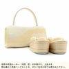 ■浅草の職人技が光る〈浅草・匠〉ブランドの草履バッグセット■ バッグと鼻緒に西陣織の正絹生地を贅沢に使用し、吉祥文様の「雲取り柄」を織り上げました。 格調高い意匠が、礼装の装いをより一層華やかに引き立てます。 バッグは両端にスリットポケットを備え、すぐに取り出したい小物を収納するのに便利。 中央部分は金具付きで大きく開くため、荷物の出し入れがスムーズに行えます。 底鋲があるので、置いたときも底が傷みにくく安心。 美しい佇まいと実用性を兼ね備えたデザインです。 草履はふっくらとした鼻緒が足にやさしく馴染み、足裏に当たる部分にはクッション加工を施しています。 格式ある3枚芯で程よい高さを持たせ、ゴールドのラインが華やぎを添えます。 フォーマルシーンを一層華やかに引き立て、快適さも兼ね備えた草履バッグセット。 大切な日のおともに、ぜひお手に取っていただきたい逸品です。