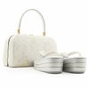 2色展開 【No.1】 バッグ・花緒:ホワイト(アイボリーに近い白)・ピンク 草履台:シルバー 【No.2】 バッグ・花緒:ホワイト(アイボリーに近い白)・ブルー(水色) 草履台:シルバー